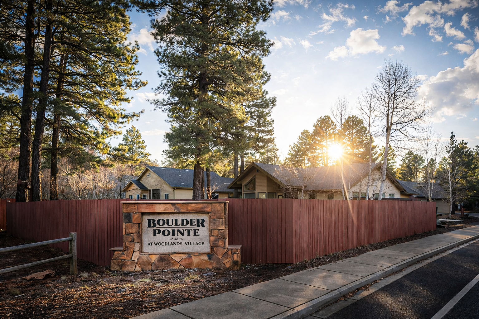Boulder Point lies just east of downtown Flagstaff, putting Northern Arizona University, grocery stores, and daily services within easy reach. Despite its convenience, the neighborhood preserves an insulated character. Traffic stays light, commercial activity stays out, and towering pines dominate the streetscape.